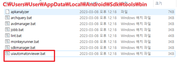 uiautomatoriviewer.bat 실행하면 xpath 를 얻을 수 있다.